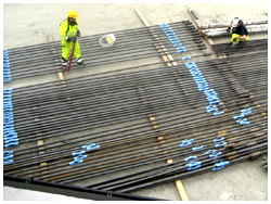 Tension Piles under dynamic loads can be executed with single corrosion protection (SCP) or double corrosion protection (DCP) depending on the environmental conditions on site. Splices in this case have to be connected by couplers and torque lock nuts. The splice is corrosion protected by means of petrolatum tape and heat shrink sleeves.